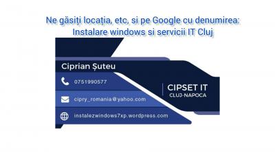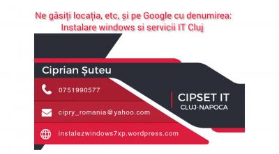 Instalare windows si servicii IT Cluj Avem experiență profesională din anul 2009! CIPSET IT Cluj !!Ne găsiți locația, orarul nostru, etc, și pe Google, cu denumirea: Instalare windows si servicii IT Cluj Vă rugăm să ne sunați, etc, înainte de a veni la noi. Mulțumim.!! -Pentru orice alte servicii, detalii, etc, doriți din domeniul IT, discutăm telefonic, live. -Windows cu licență, Programe software cu licență!! -(Pachetul nostru este: Instalare windows 11, Instalare windows 10, etc, cu licență, pachetul Office 365 cu licență, drivere, antivirus, programe de bază, toate cu licență!) Licențele sunt pe perioadă nedeterminată! Pachetul de bază este scris mai sus, Dar se mai poate modifica și în funcție de dorințele clientului: (Programe speciale suplimentare cu licență, recuperări de date, etc.) -În caz de nevoie, facem deplasări și la domiciliul clientului. -Preț exact, telefonic și pe site-ul nostru. -Vă putem oferi, și consultanță, ajutor de la distanță, prin programe Remote, la nevoie! -IMPORTANT!: Mai multe detalii despre noi, program, serviciile noastre complexe, etc, vă invităm sa intrați pe site ul nostru oficial care este scris pe coperta de prezentare! -Mulțumim, vă așteptăm! -Garantăm maximă seriozitate, ajutor si muncă de calitate! -(ATENȚIE: LUCRĂM CU PROGRAME SOFTWARE LICENȚIATE DIN SIMPLUL MOTIV, FIINDCĂ FIECARE ȘI NOI ȘI CONCURENȚA DECIDEM CUM VREM SA LUCRĂM CU CLIENȚII. ALEGEREA FIECĂRUIA.)! Instalare windows Servicii IT Instalare windows Cluj Servicii IT Cluj Instalez windows Cluj Service IT Cluj Reinstalare windows Cluj Service laptop Cluj Service laptop Floresti Service calculatoare Cluj Service calculatoare Floresti Reparatii calculatoare Cluj Reparatii calculatoare Floresti instalare windows Floresti Service de laptopuri Service de calculatoare Service PC Floresti Service PC Cluj PC repair Floresti PC repair Cluj IT Cluj IT Floresti Instalare windows Dej Reparatii calculatoare acasa Reparatii windows Floresti Reparatii windows Cluj Reparatii windows Reparatii calculatoare la domiciliu Reparatii calculatoare la domiciliu Cluj Reparatii calculatoare la domiciliu Floresti Reparatii calculatoare Reparatii sisteme de operare Floresti Reparatii sisteme de operare Cluj Reparatii calculatoare Cluj la domiciliu Reparatii calculatoare Floresti la domiciliu Laptopuri Cluj Laptopuri Floresti Calculatoare Floresti Calculatoare Cluj Windows 11 Cluj Windows 10 Cluj Windows 10 Floresti Windows 11 Floresti Recuperare date Cluj